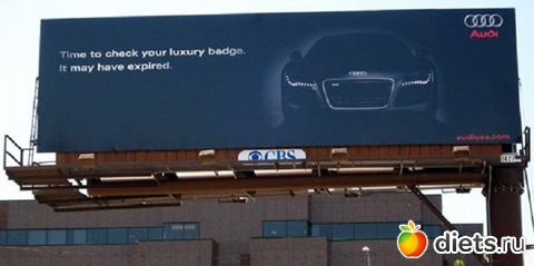 На сей раз на билборде Audi изобразили свою гордость – R8, а рядом приписочку ‘Time to check your luxury badge. It may have expired.’ (Время проверить твою ‘люксовость’. Возможно, ее уже нет.)