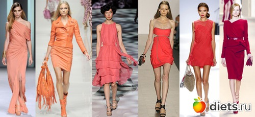 Коралловые оттенки обладают изысканностью. Один раз увидев, вы легко будете отличать их от красных и розовых оттенков, несмотря на то, что коралловая гамма очень широкая. В этой линейке много ярких, драгоценных, экзотических цветов. И любой цветотип может выбрать себе модное платье на каждый день подходящего оттенка.
