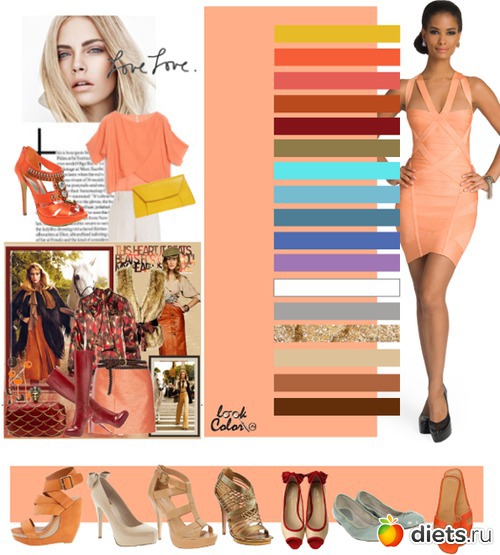 Граница между розовым и оранжевым пересечена, но осталась где-то рядом. Цвет достаточно яркий для «зимы» и достаточно сдержанный для «лета». Достаточно теплый для «весны», «осени» и нейтральный для «лета». Этот цвет можно назвать универсальным. Он мягкий и пряный, как ароматы востока. Нежный закатный цвет неба в теплый день перед самыми сумерками. Аксессуары к этому цвету могут быть бирюзовыми, коралловыми, янтарными, аметистовыми, золото серебро.