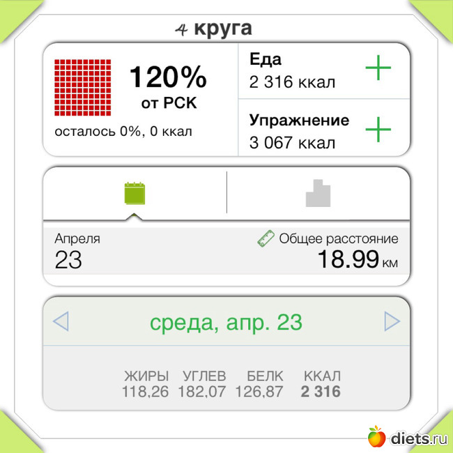 По еде на калории не заморачиваюсь, а вот с жирами перебор. Эх.