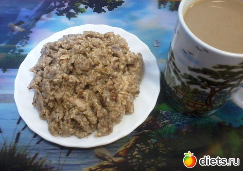 Завтрак: Кашка Дю соленая из двух видов отрубей с мясом и кофе с молоком (спасибо девочки за рецептик - это нереальная внуснотень
