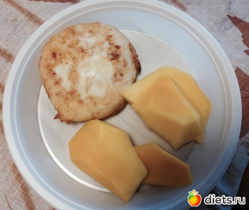 В перекус был 1 сырничек и манго