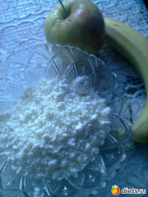 Творог, сырок творожный, яблоко, еще банан, но его сфоткала на ужин