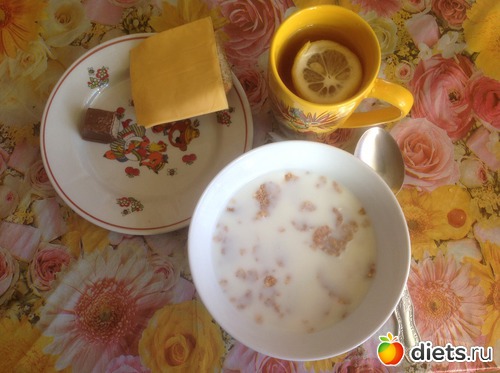 ЗАВТРАК - хлопья с молоком+бутерброд с сыром+шоколад+чай с лимоном