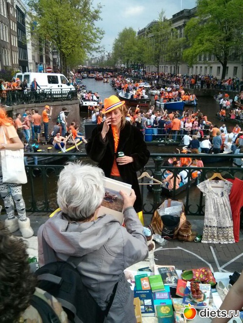 ). Все бухают со вчерашнего дня, ходят в оранжевом и плавают на лодках по каналам. Вот, совершенно постороннине амстердамцы
