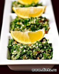 Непосредственно в Ливане салат «Табуле» едят с помощью виноградных листьев, листьев салата или лавашем. Попробуйте и вы, так будет намного вкуснее.
