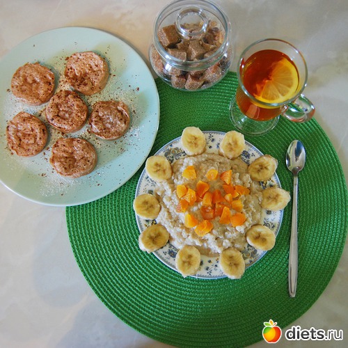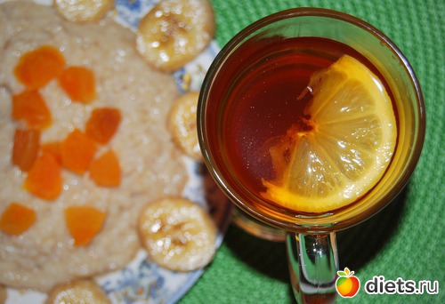 - каша NordiC с отрубями (на воде), с сахаром, маслом курагой и бананом;