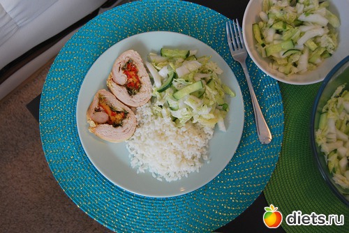 - рулет из индейки* (опять пришлось его приготовить, ибо очень он нам полюбился);
