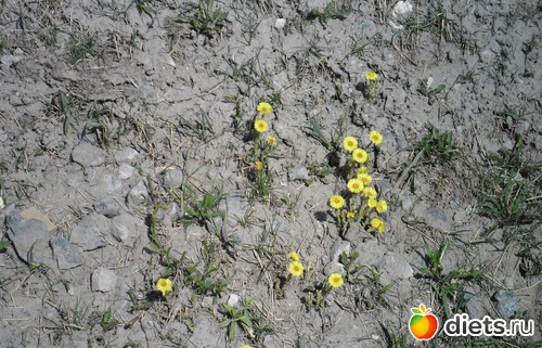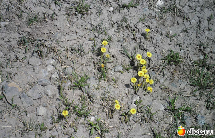 это наши первоцветы: мать-и-мачеха зацвела на солнечном пятачке