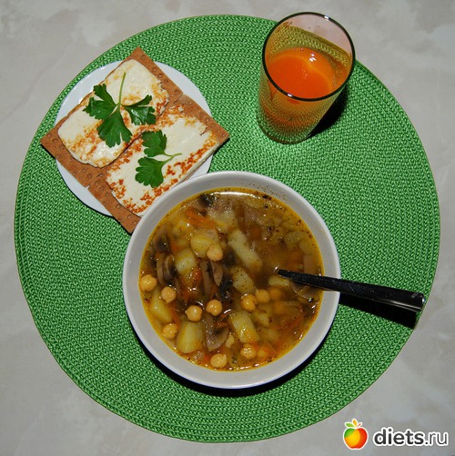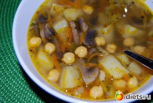 - грибной суп из шампиньонов с нутом: