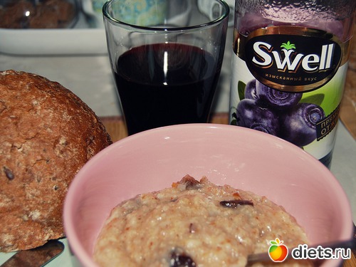 - каша NordiC с отрубями (на воде), с сахаром и черносливом;