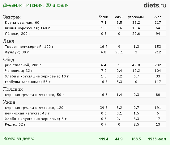 Рацион сегодня так себе, чего-то недобрала жиров сегодня, из-за этого мало калорий в итоге.