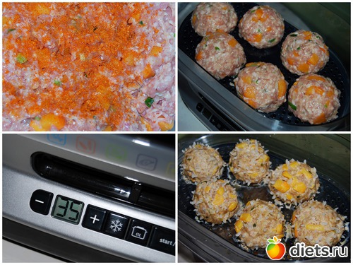 Ёжиков можно и вовсе без тыквы организовать или с кабачком - ничуть не хуже получаются (это у нас вообще ходовой рецепт в пароварке - быстро и вкусно)