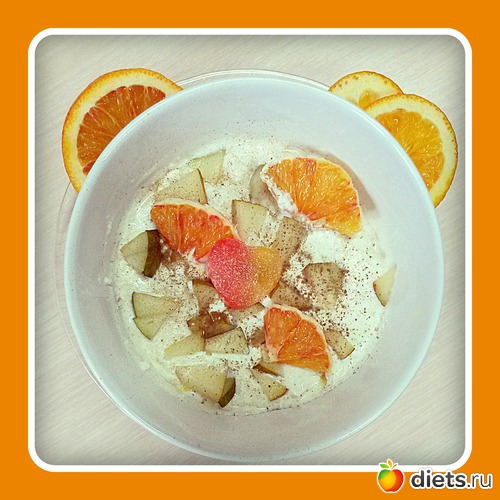 Творог с йогуртом, грушей и минеолой, корицей и... мармеладное сердце.