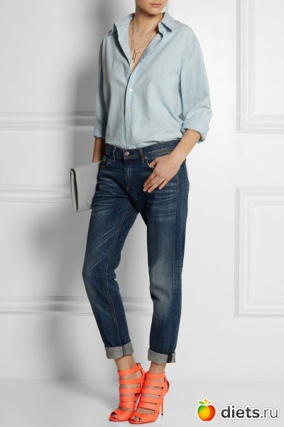 выглядеть стройнее. Каблуки нам в помощь — и пусть они совпадают по цветовой гамме с кромкой брюк.