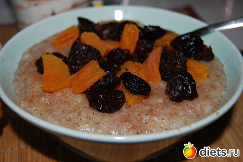 Традиционно каша NordiC, на сей раз с 4-мя видами зерновых, с сухофруктами (курага и чернослив).