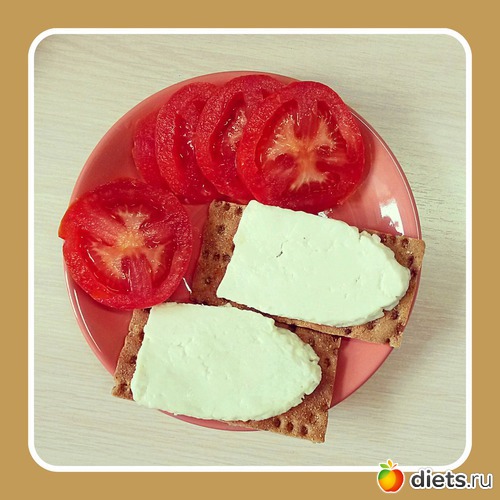 Хлебцы отрубные с адыгейским сыром и помидором.