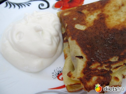 завтрак: дю-каша, блинчик со сметаной из кефирной ледышки, кофе+молоко