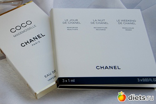 Ещё девушка-консультант оказалась настолько мила, что дала мне, от щедрот своих, пробники новых шанелевских кремов и парфюма Coco (когда-то давно он мне нравился и я даже серьёзно подумывала о приобретении, да не успела..., купила приятельница и стала его пользовать и "в хвост и в гриву", на том моя любофффь испарилась, увы...