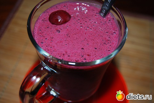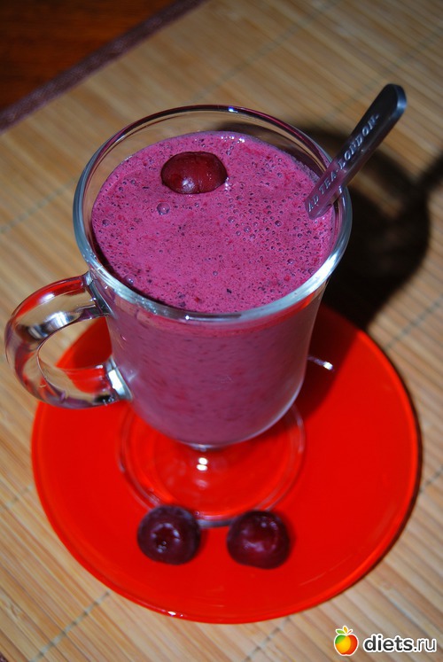 А делаю так: черника и вишня замороженная + йогурт натуральный (где-то по одной части каждого ингредиента) + ложечка сахара (можно добавить, а можно и нет - по желанию), все это профигариваем в блендере, разливаем по стаканам и наслаждаемся