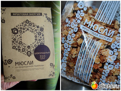 Помните, в прошлый раз я показывала вам мюсли из пророщенной пшеницы с шоколадом, которые купила, в процессе поиска бананов, загадочным образом исчезнувших из всех близлежащих супермаркетов?
