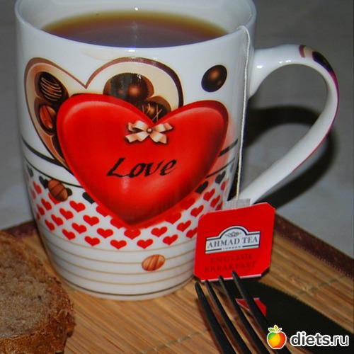 Чуть не забыла, у меня же (внимание, первая обновочка!) новая кружечка - с сердечками и конфетками