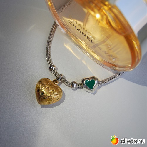 - серебряный браслетик с шармом в виде сердца, надев который, снимать уже не захотелось!