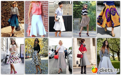 Тема 60-70 годов уже не первый сезон витает в воздухе моды, поэтому особо актуальны сейчас юбки формы «трапеция». Данная форма просто находка для девушек с фигурой капелька или груша, так как одновременно скрывает полноту бедер и подчеркивает узкую талию.