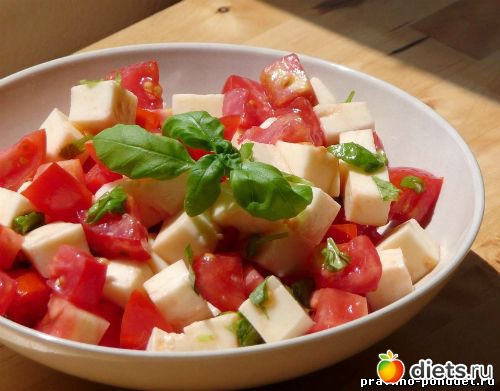 Помидоры и сыр порезать кубиками, зелень мелко порезать, все перемешать, посолить, поперчить по вкусу.