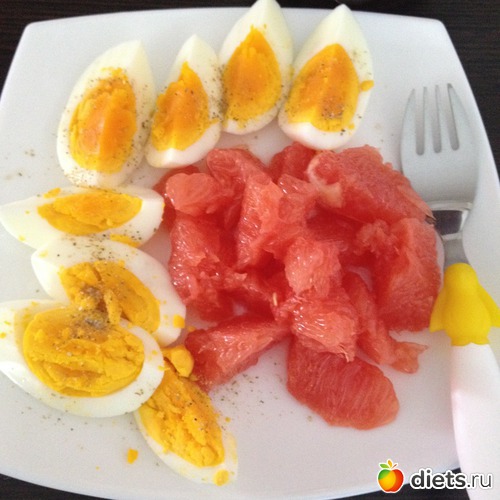 Отчитываюсь за 6 день Магги: Завтрак: привычные яйца с грейпфрутом Забыла на завтрак выпить Элавию и вспомнила только к обеду