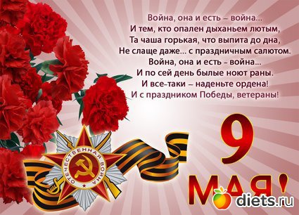 9 мая — день Победы, день памяти о подвигах и самопожертвовании... Пусть никогда больше голубое небо не чернеет и земля не содрогается от ударов. Желаю мира и добра! Всех с праздником!!!