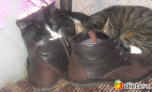 А это мои кошаки - быстро среагировали и мои боты облюбовали для лежанки.