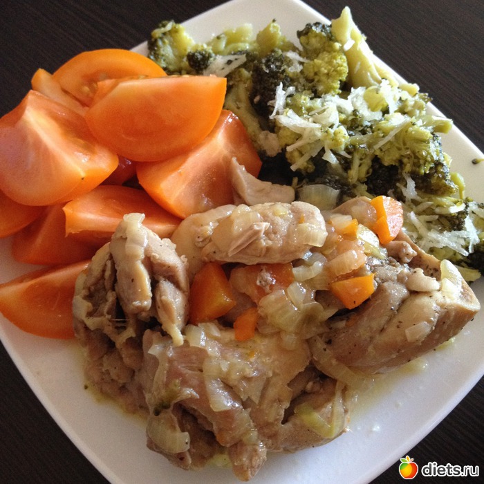 Завтрак: омлет из 2 яиц, пол грейпа Обед: курица тушеная с луком и морковью, брокколи на пару, помидоры, целый грейп. Ужин: кабачки фаршированные овощами. Вчера в честь праздника выбрались с семьей на природу, но я следовала своей диете, ничего не пила, шурпу и шашлыки не ела