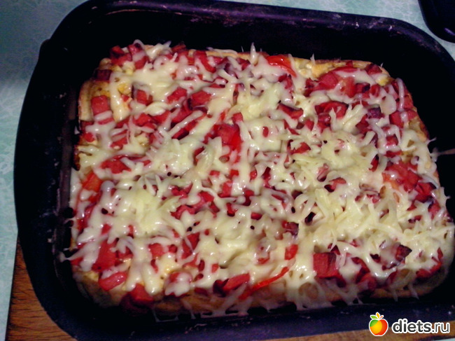 Готовую пиццу посыпать любым твердым тертым сыром.