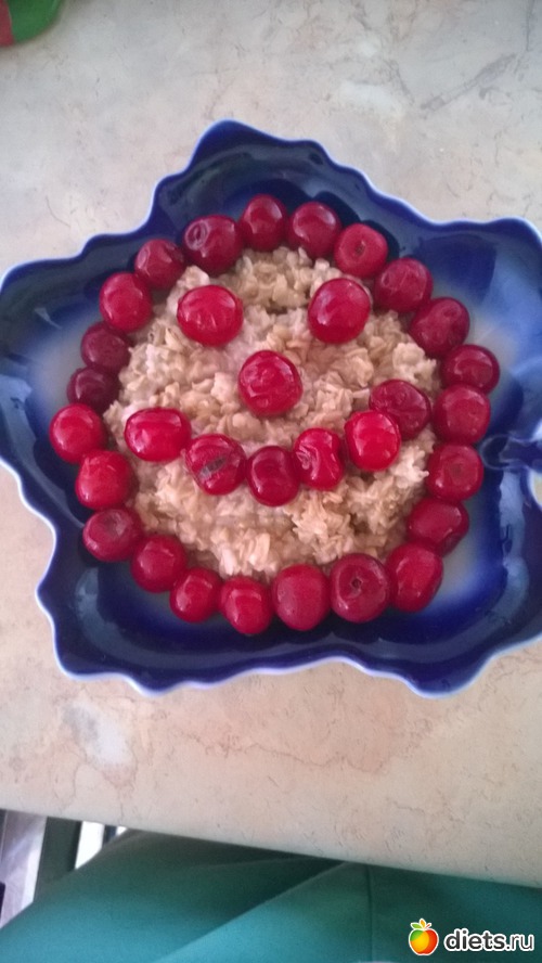 День начался с завтрака: овсяной каши на воде с вишнями морожеными и стаканчиком кефира.