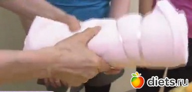 вы лежите на валике, скрученном из полотенца. В результате уходит живот.