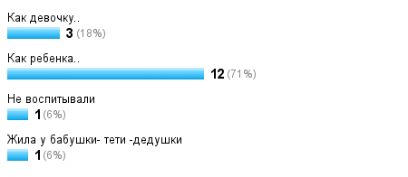 Все портило еще и мое окружение: так как я была ранним ребенком родителям было не особенно до меня и мама не дала почему то мне основного воспитания которое сейчас дают девочкам. Это сейчас мамочки которые заботиться о дочках переживают о том какая она вырастит и своим примером показывают какая должна быть девочка. Уверяю вас что у женственной мамы не вырастет девочка - пацанка.. А мне довелось трусоваться в компании мальчишек и я вообще не признавала себя девочкой лет до 8. Сейчас я понимаю эту серьезнейшую ошибку в воспитании которую допустили мои родственники.. Они просто не настаивали и не искали для меня того окружения которое обеспечено бы мне внимание к тому на что должна обращать внимание девушка. Мама так и говорит: мы растили тебя, как солдатика..