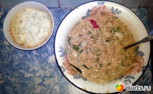 Сегодня он почти такой же как вчера. Разве, что добавил в смесь редиску и лук.