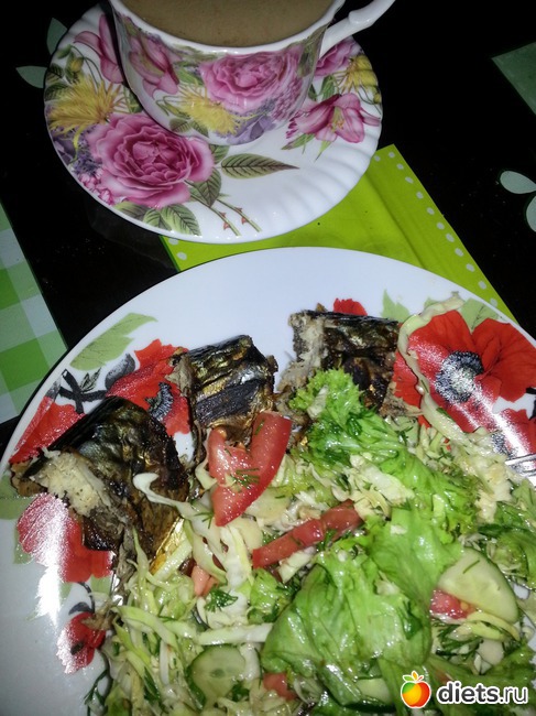 Завтрак – запеченная скумбрия с салатиком, кофемолоко