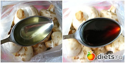 Завязать пакет и хорошенько его потрясти, оставить грибы мариноваться 10-15 минут.