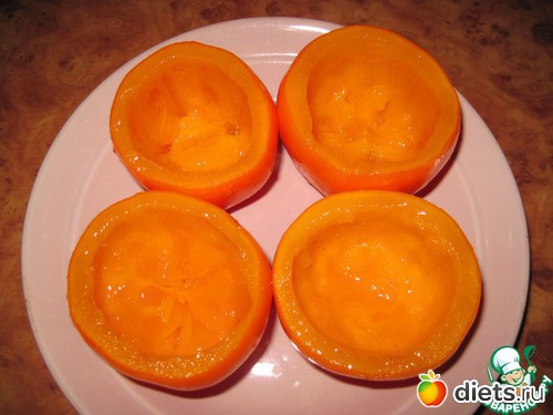 Срезать ровно верхушку у хурмы вместе с плодоножкой, затем аккуратно чайной ложкой выскрести мякоть.