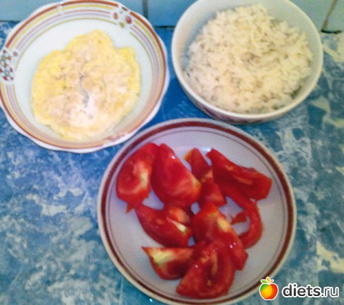 Рис, яйцо и помидорка.