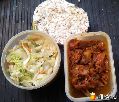 А еще фасоль, а под ней мясо... Ну и пара слайсов.