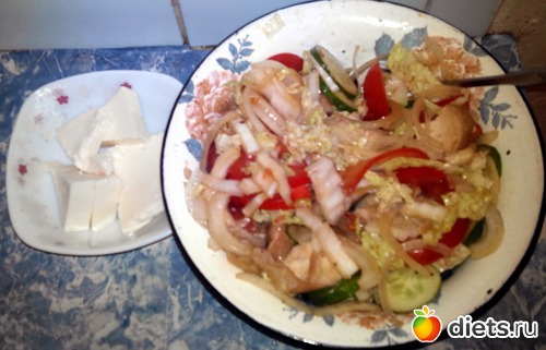 А просто сделал салат, нарезал туда же куриную грудку и немного адыгейского сыра "на сладкое".