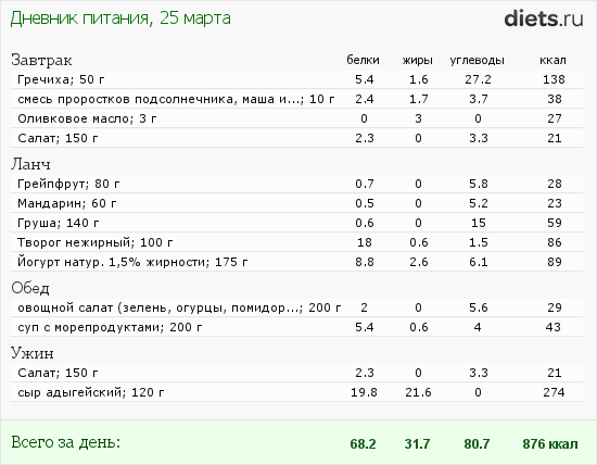 Отвеса сегодня нет, но и привеса тоже. С утра было ощущение, что немного отекла, хотя визуально этого не видно. Либо это самовнушение, либо сказался адыгейский сыр, съеденный на ужин. Но я не огорчаюсь, т. к. вес и без того очень быстро снижался, надо немного переждать, чтобы не было потом обвисшей кожи и прочих неприятностей.