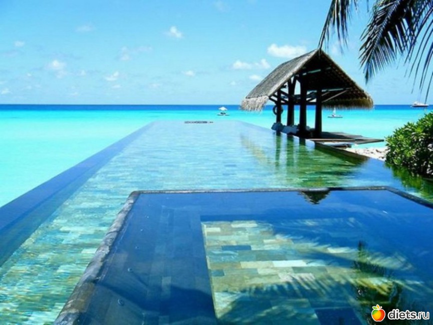 Бесконечный бассейн на Мальдивских островах, отель Reethi Rah