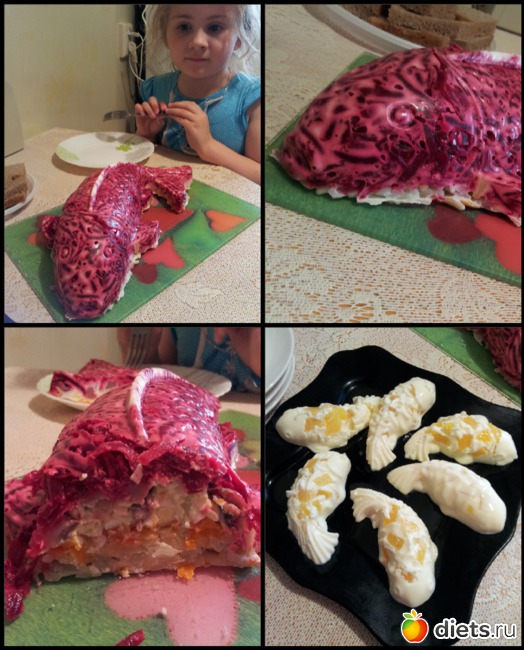 Испробовали силиконовые формы для всего,что угодно- делали салат и десерт- вот такие рыбки вышл)