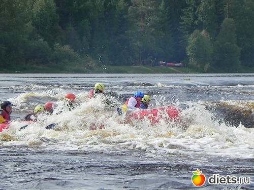 Пока порог покоряешь, про еду совсем не вспоминаешь. Плюс еще и физкультура. Когда в команде гребешь, отлынивать нельзя. Усталость придет только вечером. Да и то не усталость, а какая то истома от наслаждения. А вечером костер, гитара, песни