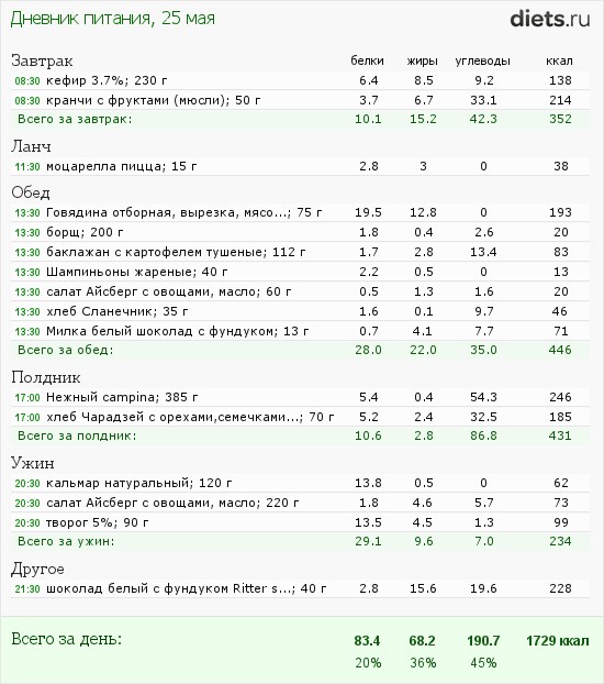 Калорийность продуктов