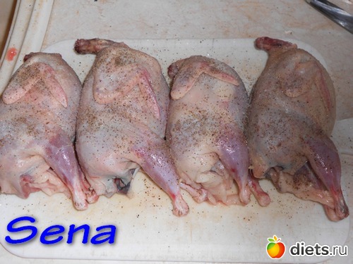 Затем тушки натереть солью и перцем. В принципе можно кроме перца и другие специи, но я предпочитаю не перебивать вкус, поэтому только соль и перец